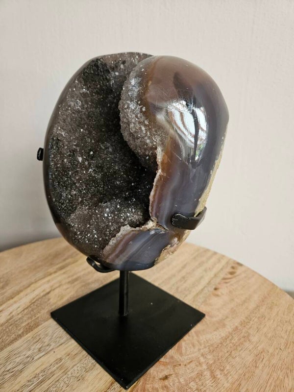 Mooie donkere Druzy agaat op standaard.